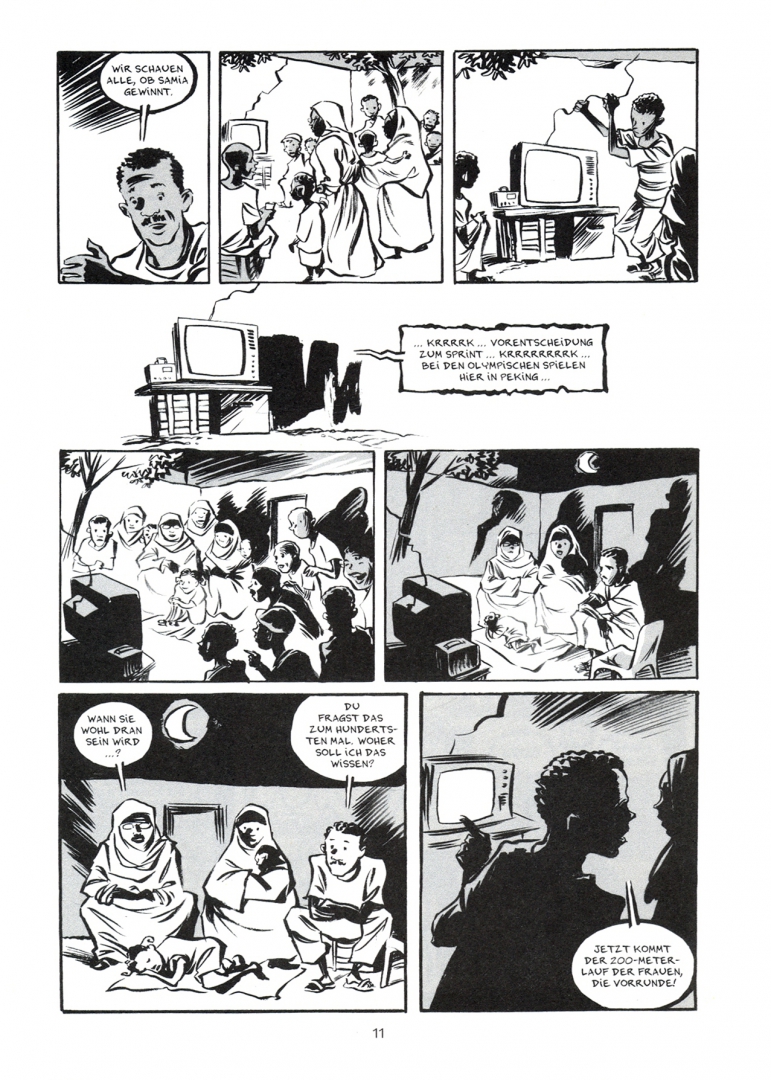 Dass Reinhard Kleist in der Lage ist, schwierigste historische Themen in einer Graphic Novel umzusetzen, hat er mit "Der Boxer" bewiesen. In "Traum von Olympia" nimmt er sich ein aktuelles Thema anhand einer wahren Geschichte vor: Die Sprinterin Samia Yusuf Omar vertrat Somalia bei den Olympischen Spielen 2008 in Peking. In ihrer Heimat wurde sie jedoch von islamistischen Extremisten bedroht, die ablehnen, dass Frauen Sport treiben. In der Hoffnung, an der Olympiade in London teilnehmen zu konnen, versuchte sie die Flucht nach Europa. Samia Yusuf Omar ertrank 2012 im Alter von 21 Jahren vor der Kuste Maltas im Mittelmeer.